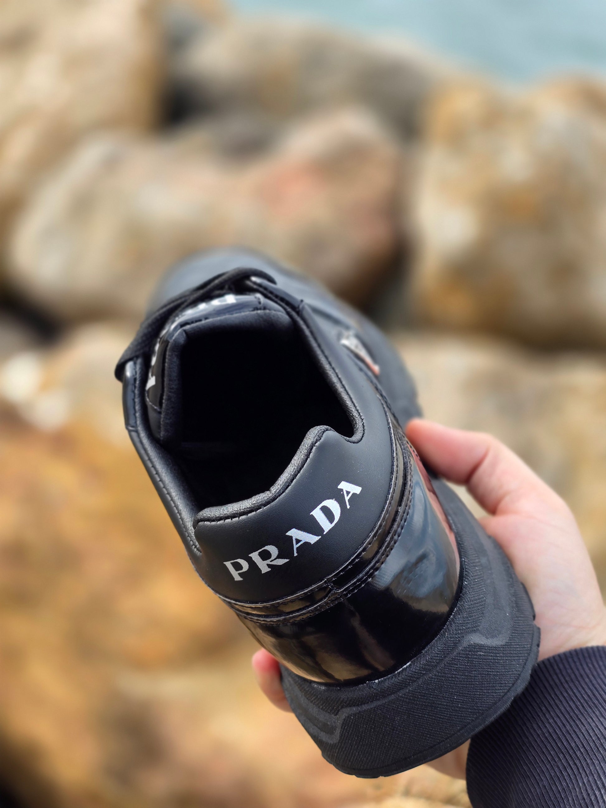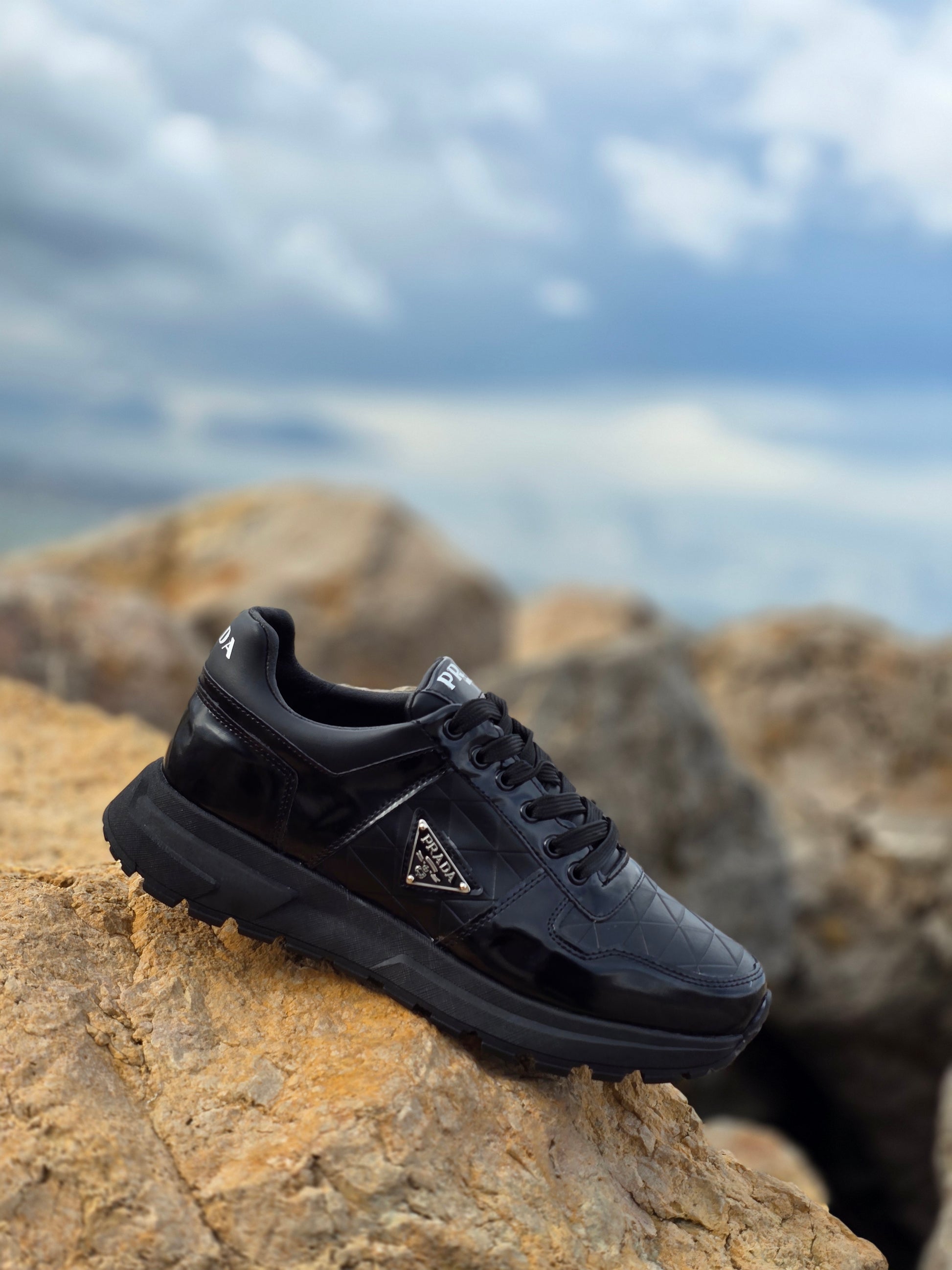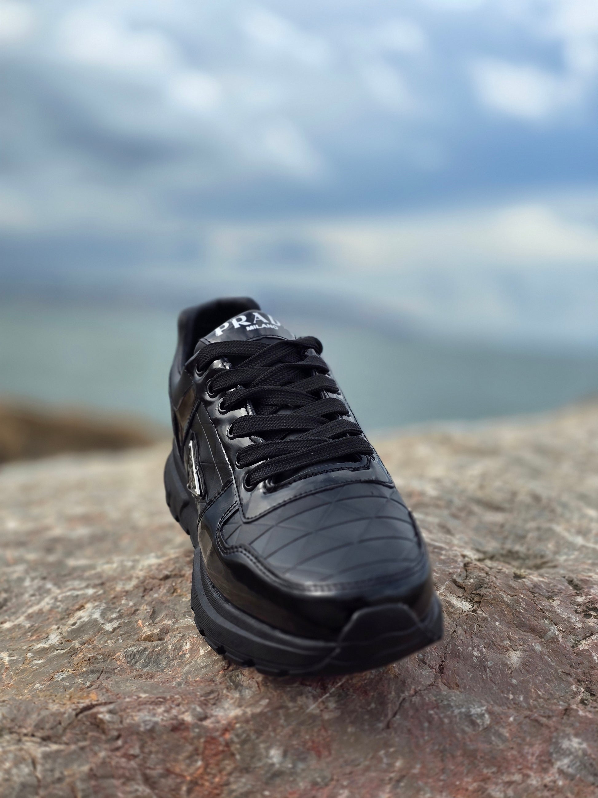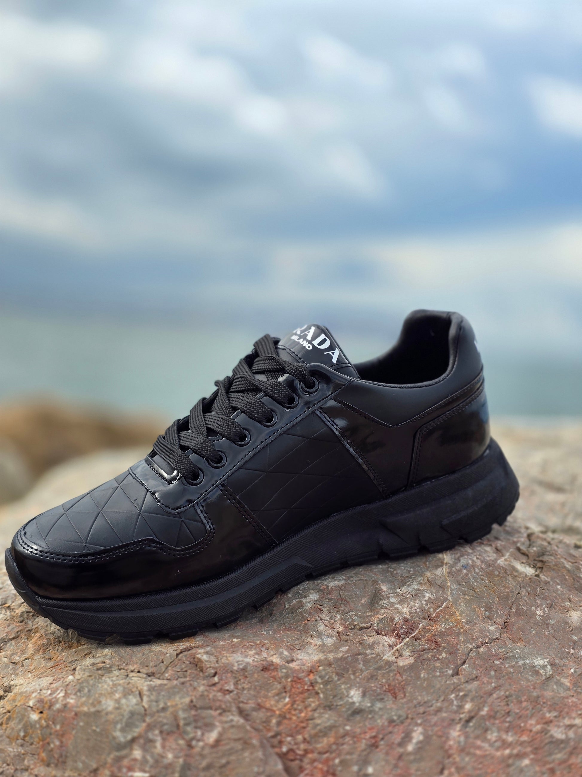 حذاء رياضي رجالي بأسلوب Prada بنسخة بجودة عالية وتصميم أنيق. يتميز بخياطة متقنة وتفاصيل دقيقة تمنحه مظهراً فاخراً يناسب الحياة اليومية والخروج.